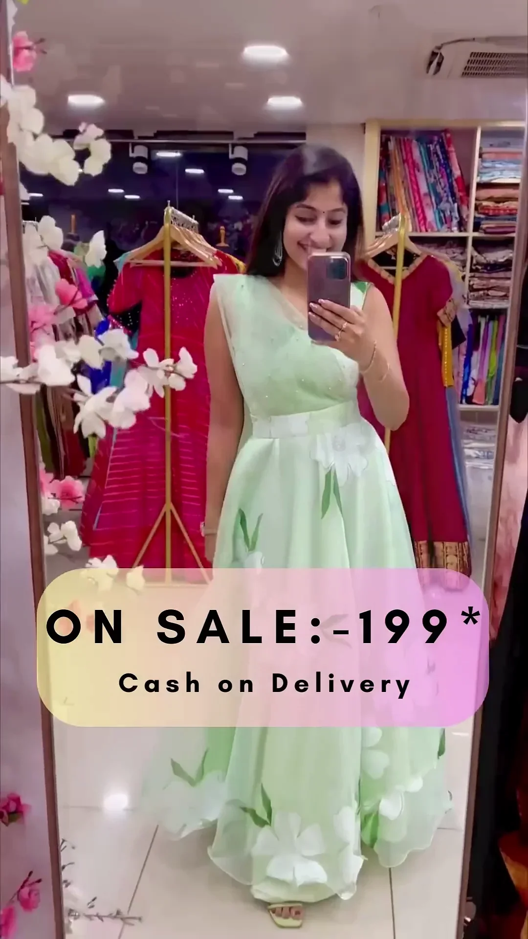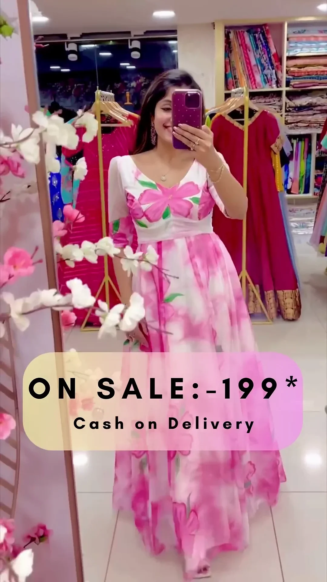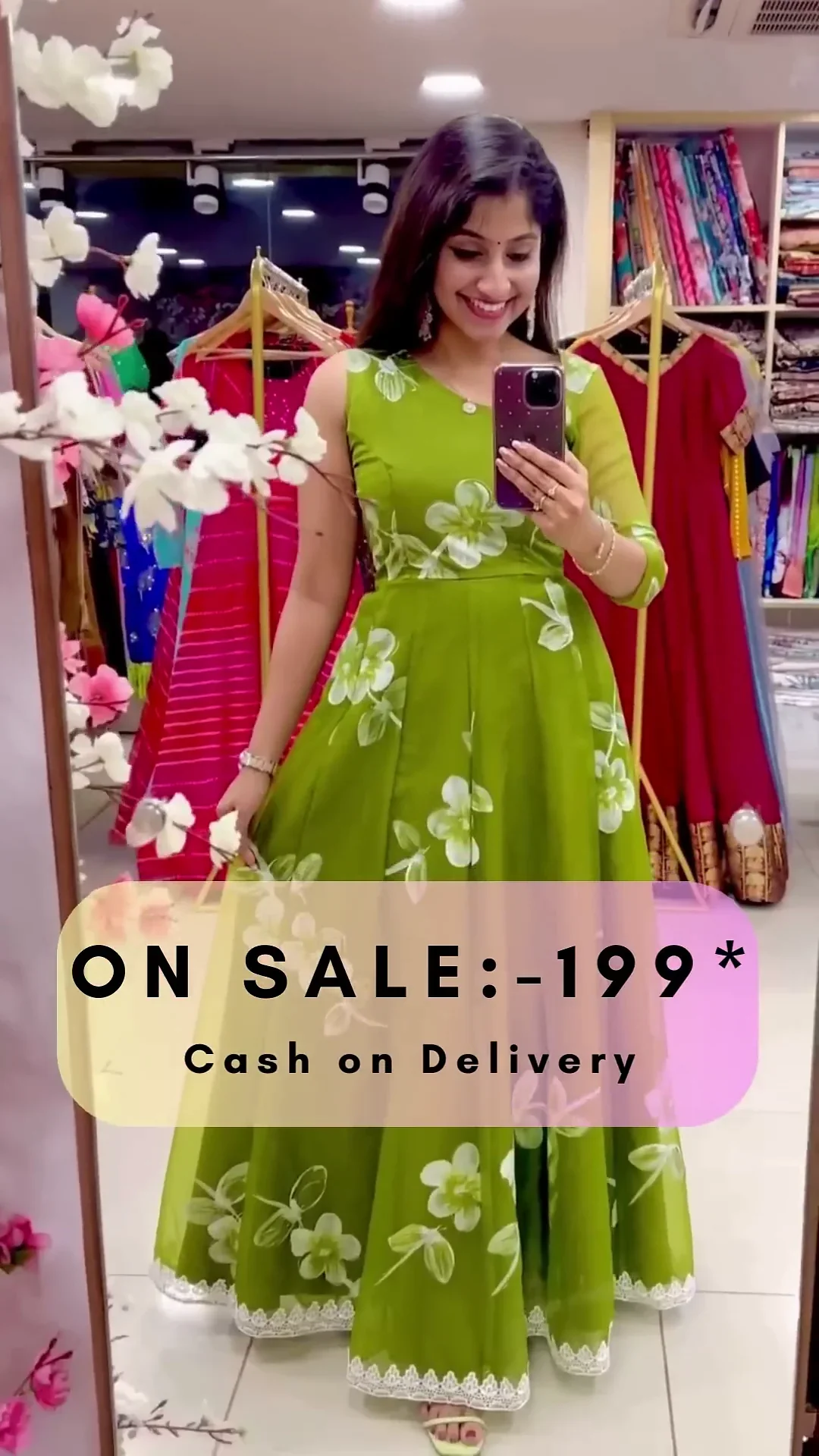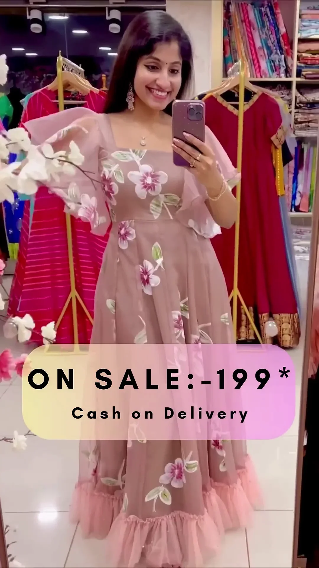 Fabric – hand painted floral organza. (with full lining, lining mandatory).